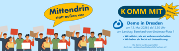 Wir sagen NEIN zu geplanten Kürzungen in der Eingliederungshilfe und beteiligen uns an der Demonstration am 12. Mai 2026 in Dresden mit dem Motto: Mittendrin statt außen vor.